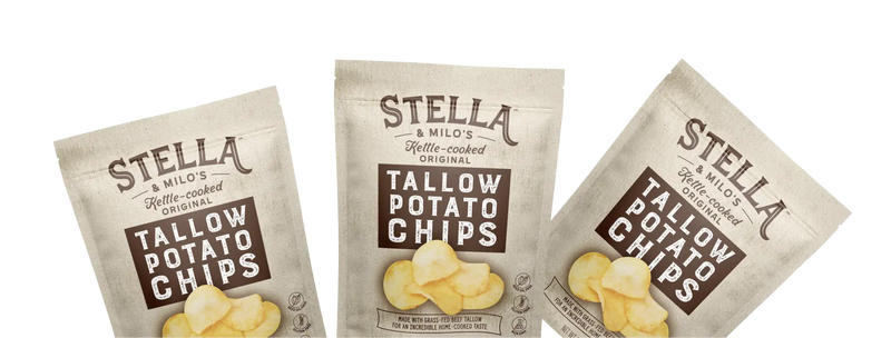 Stella & Milo’s beef tallow potato chips are inspired by how chips were originally made—before industrial oils and shortcuts took over the snack aisle. By cooking our potatoes slowly in grass-fed beef tallow, we create a deeper crunch and richer flavor that stands apart from modern chips fried in highly processed oils. These potato chips cooked in beef tallow offer a satisfying texture and clean finish that lets the ingredients speak for themselves.